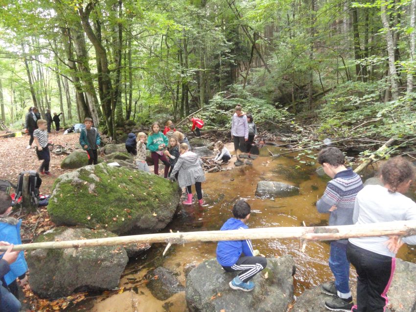 Nathan: J’ai failli tomber! Elyne: J’ai bien aimé être dans le bois. Amandine: J’ai aimé voir des salamandres ( c’est une espèce protégée et on n’a pas le droit de les toucher.) Sara: j’ai bien aimé la cascade et le jeu des empreintes d’animaux.